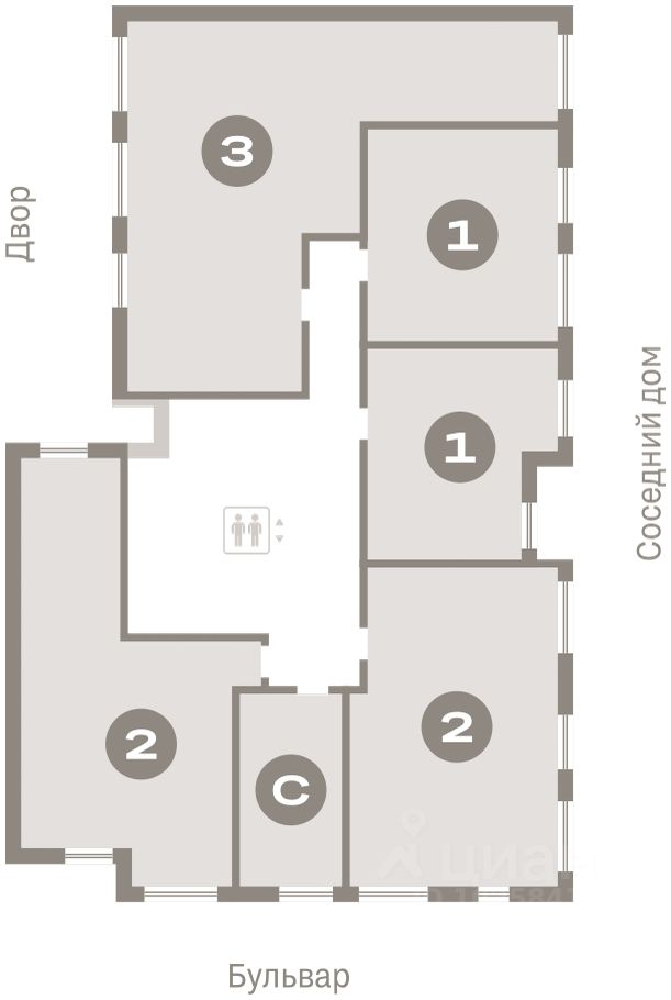 Квартира с кухней-гостиной и двумя спальнями в Кварталах Драверта. Особенности планировки: вид во двор, мастер-спальня, окна на две стороны, предчистовая отделка, разнесённые спальни, тёплая лоджия.