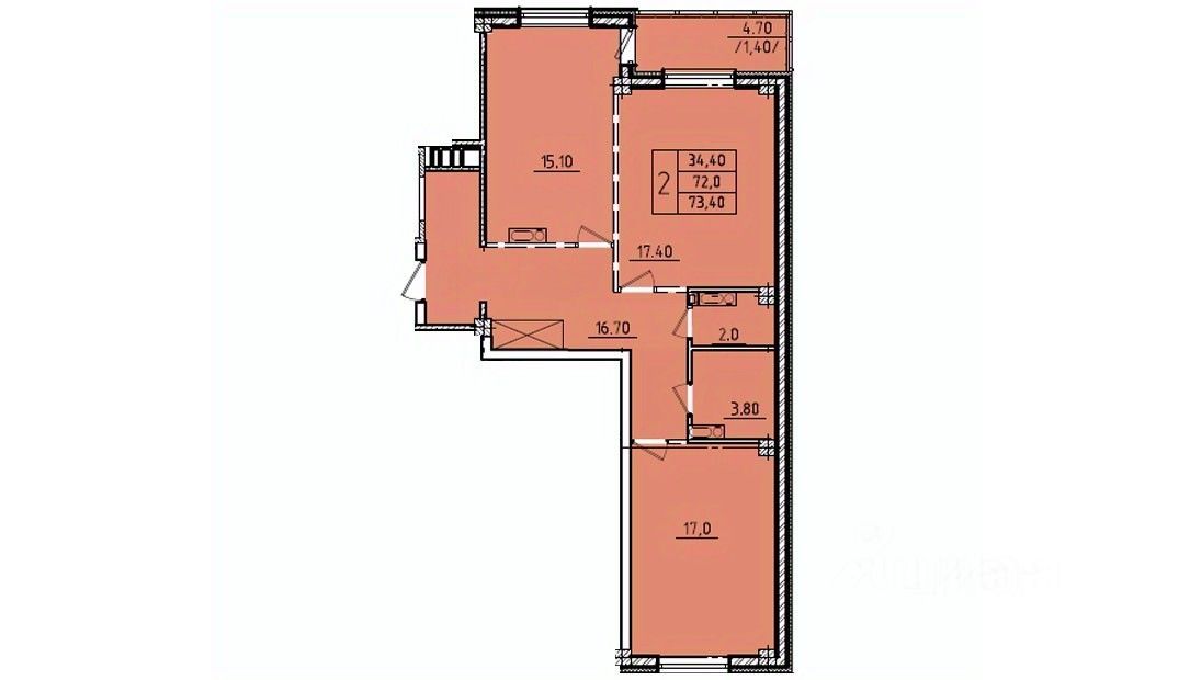 Площадь жилая34.4 м²