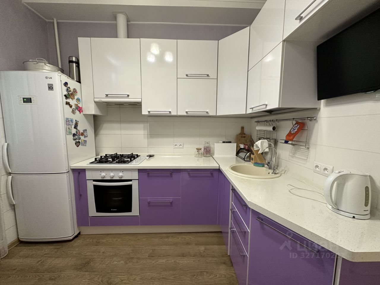 При продаже остается кухонный гарнитур с техникой.