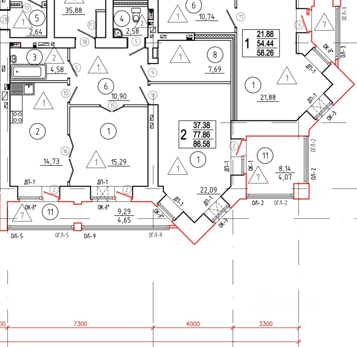 | Площадь общая | 86.6 м² |