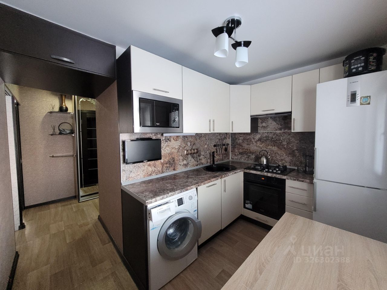 Новым собственникам остается вся встроенная мебель, кухонный гарнитур, корпусная мебель, холодильник BOSCH, стиральная машинка BOSCH, газовая плита HANSA, духовой шкаф ARISTON, посудомоечная машина SAMSUNG.