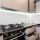 Современный кухонный гарнитур с установленной техникой (варочная поверхность, вытяжка, духовой шкаф, холодильник)