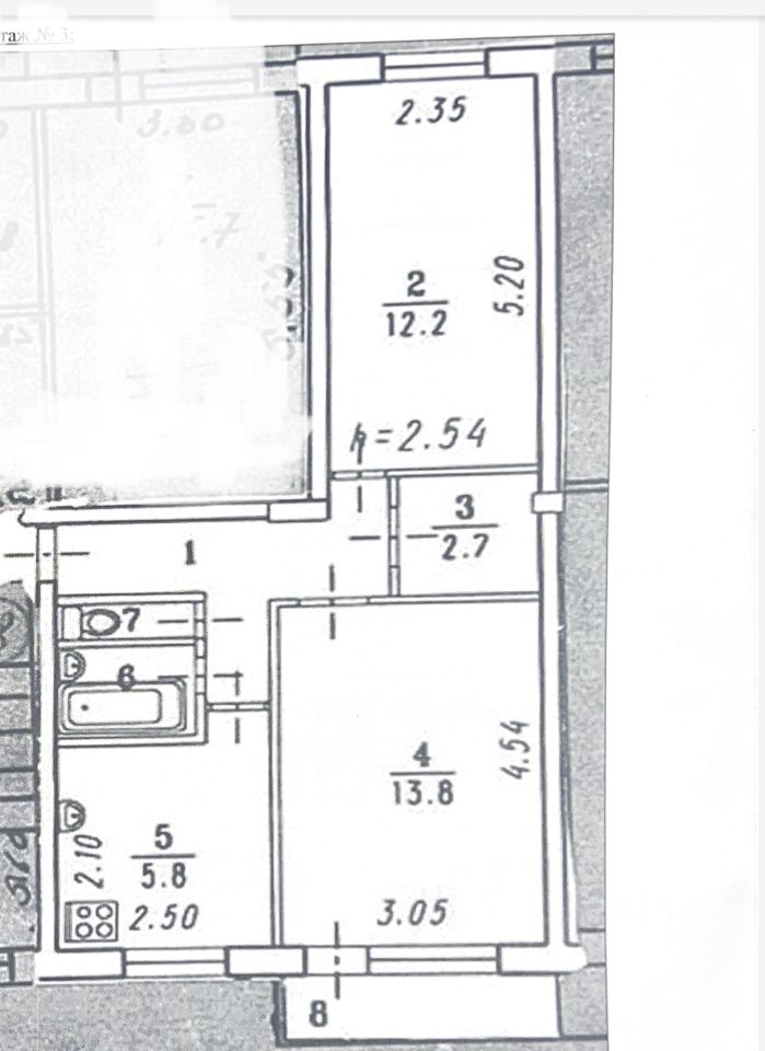 Просторная двухкомнатная квартира общей площадью 42,4 кв. м расположена на 3 этаже 5-этажного панельного дома. Жилая площадь составляет 26 кв. м, а кухня — 5,8 кв. м. Квартира идеально подходит для семейной жизни благодаря удачной планировке и уютной атмосфере. Высота потолков — 2,54 м. Окна выходят во двор, поэтому в квартире всегда тихо и спокойно.