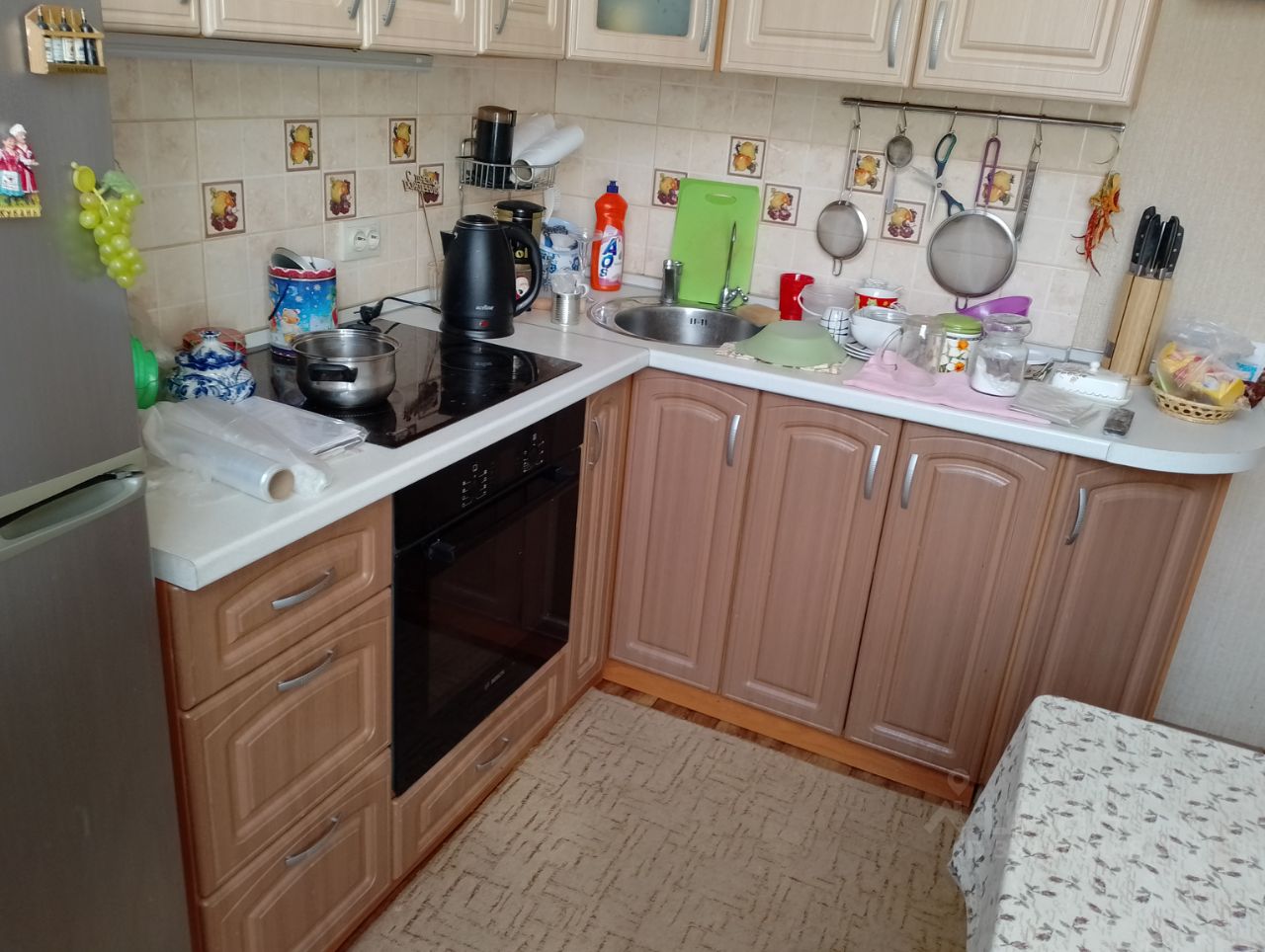 В кухне и ванной комнате установлены мощные вытяжки. В прихожей встроенный шкаф для одежды.
