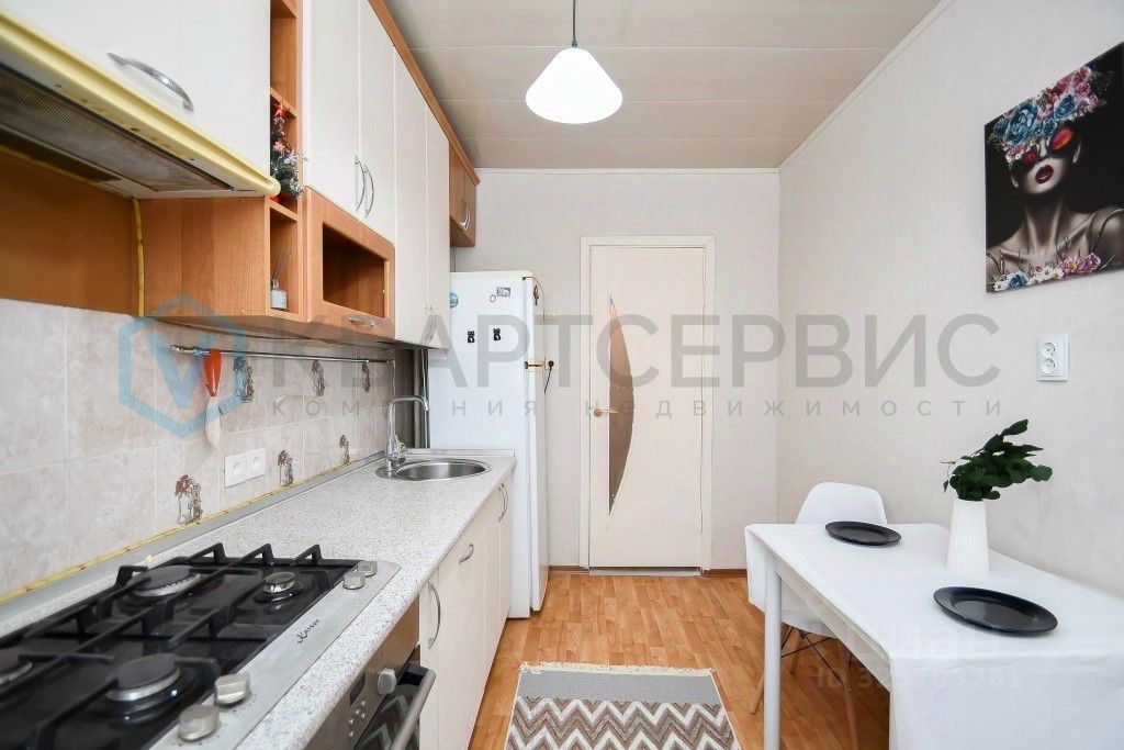 При продаже остается: кухонный гарнитур со встроенной бытовой техникой, холодильник, новая стиральная машина-автомат, шкафы, большой диван, кровать. Квартира полностью готова к проживанию!