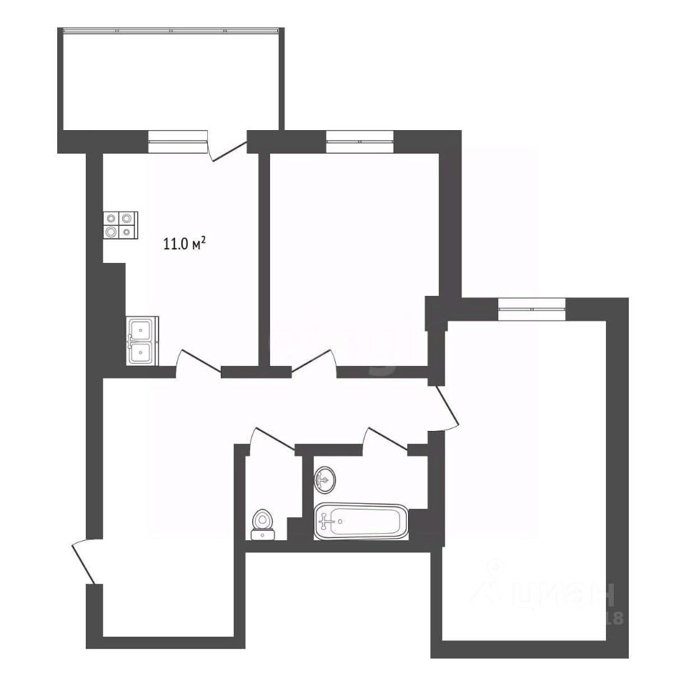Ключевым преимуществом квартиры является увеличенная кухня площадью 11 кв. м, что формирует комфортное и функциональное жилое пространство. Большая лоджия с остеклением позволяет расширить полезную площадь и может использоваться в качестве зоны для отдыха или хранения.