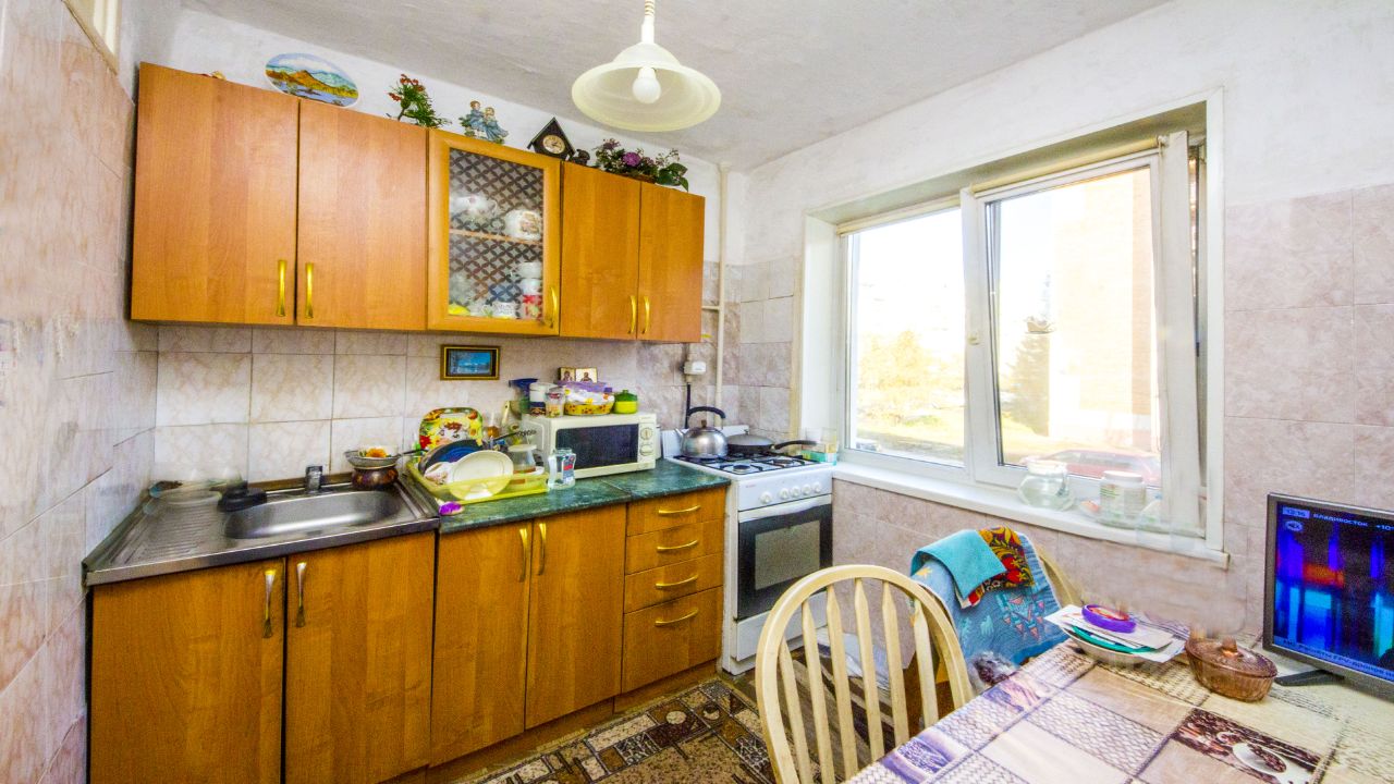 На чистой продаже уютная квартира в панельном доме 1972г.п., 44,5 кв.м. (без учёта балкона), 45,3 кв.м. с учётом балкона. Удачный второй этаж. Тёплая, не угловая. Комнаты изолированные. Вместительная кладовка. Санузел раздельный. Балкон застеклён ПВХ. Окна ПВХ. Установлены счётчики: газ, вода, эл-во. Остаётся: кухонный гарнитур, шкаф-купе. Чистый подъезд, хорошие соседи! Удобное место расположения, рядом: остановки: ''Лётное училище'', Авиационная, Аэропорт местных линий, почта, магазины, аптеки, торговые комплексы, супермаркеты, Лицей 145, дет. сад 25, пруд Кирпичка. Обременений нет. Долгов нет. Один взрослый собственник. 20 лет в собственности. Документы готовы. Возможен быстрый выход на сделку. Продажа в связи с переездом в другой город.