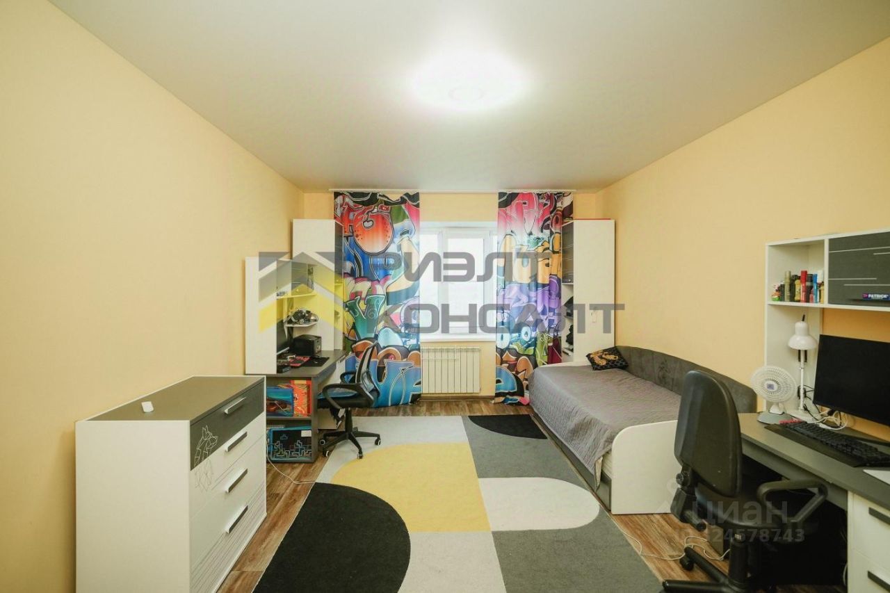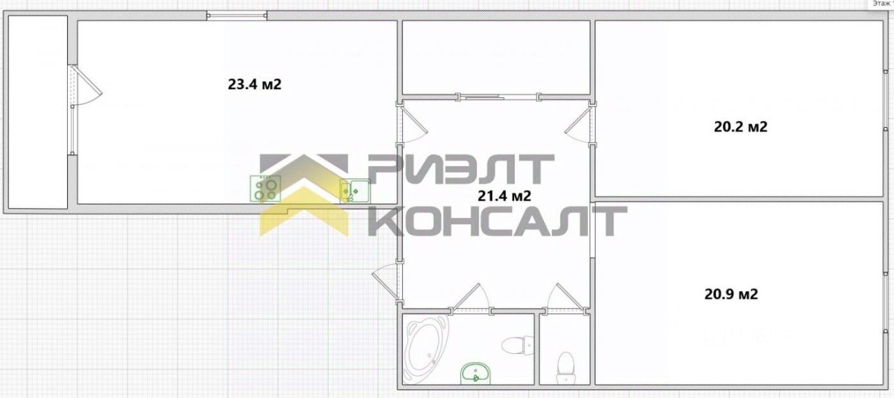 Две просторные светлые комнаты (20 и 21 кв.м.). Большой холл (21 кв.м) с обустроенной кинозоной, спортивным оборудованием и вместительной гардеробной. Санузел раздельный.
