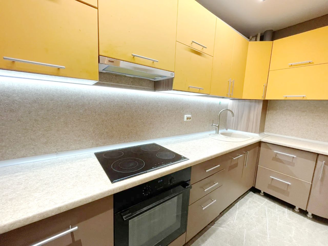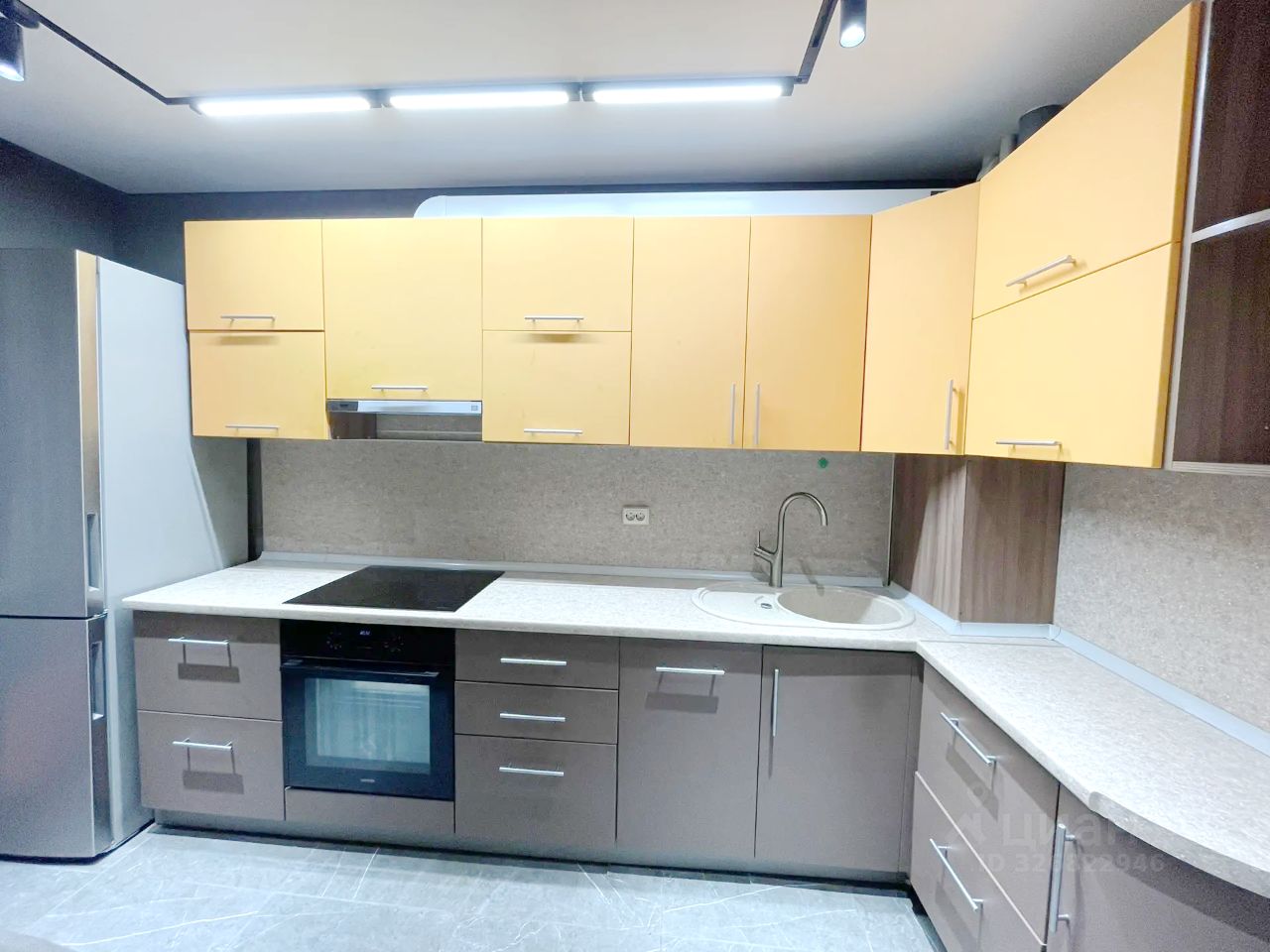 На кухне часть освещения выполнено шинопроводом с возможностью изменения дизайна,характеристик и углов освещения.