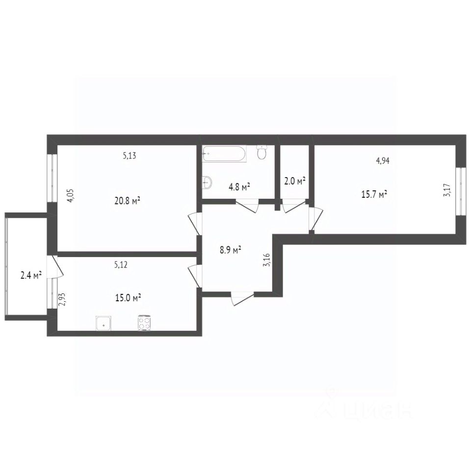 Планировка продуманна и функциональна: изолированные комнаты, раздельный санузел, просторная кухня и коридор, вместительная гардеробная, лоджия застеклена.