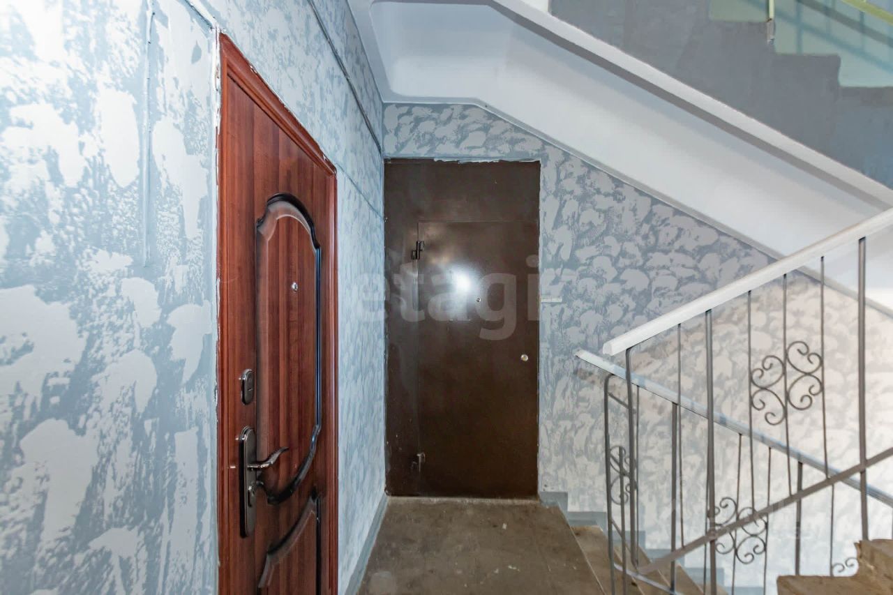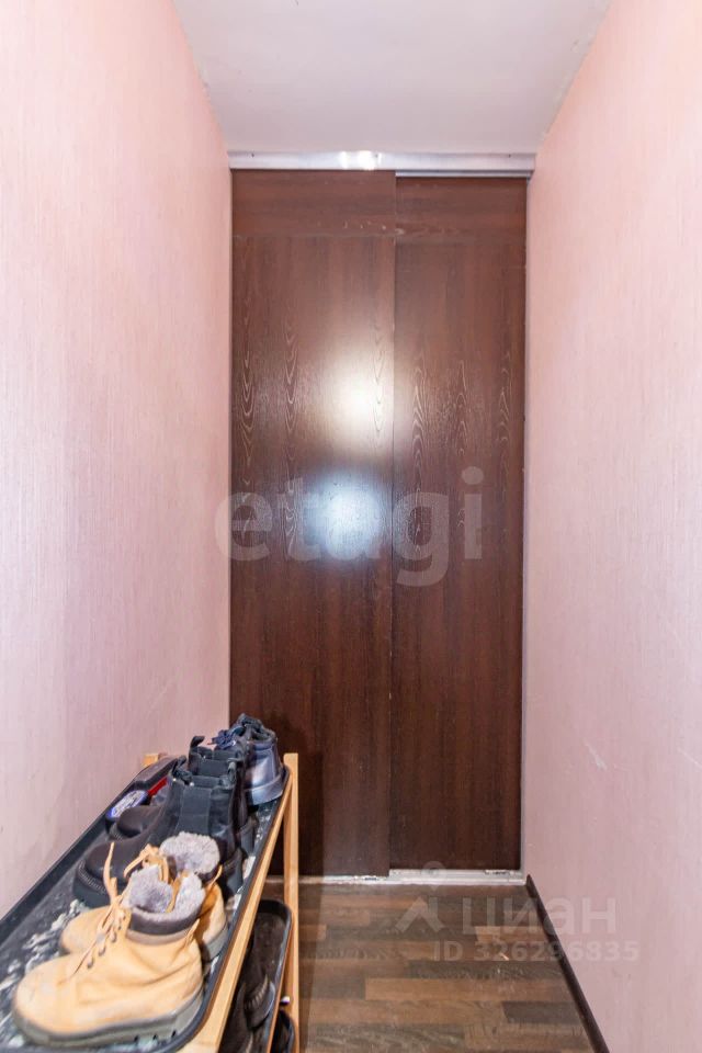 В просторном тамбуре ( на две квартиры) установлен шкаф для вещей.