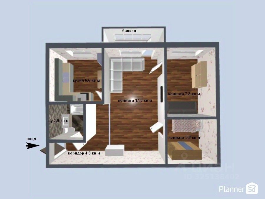 Арт. 128691373 Двушка как ''Трёшка'' с мебелью!
