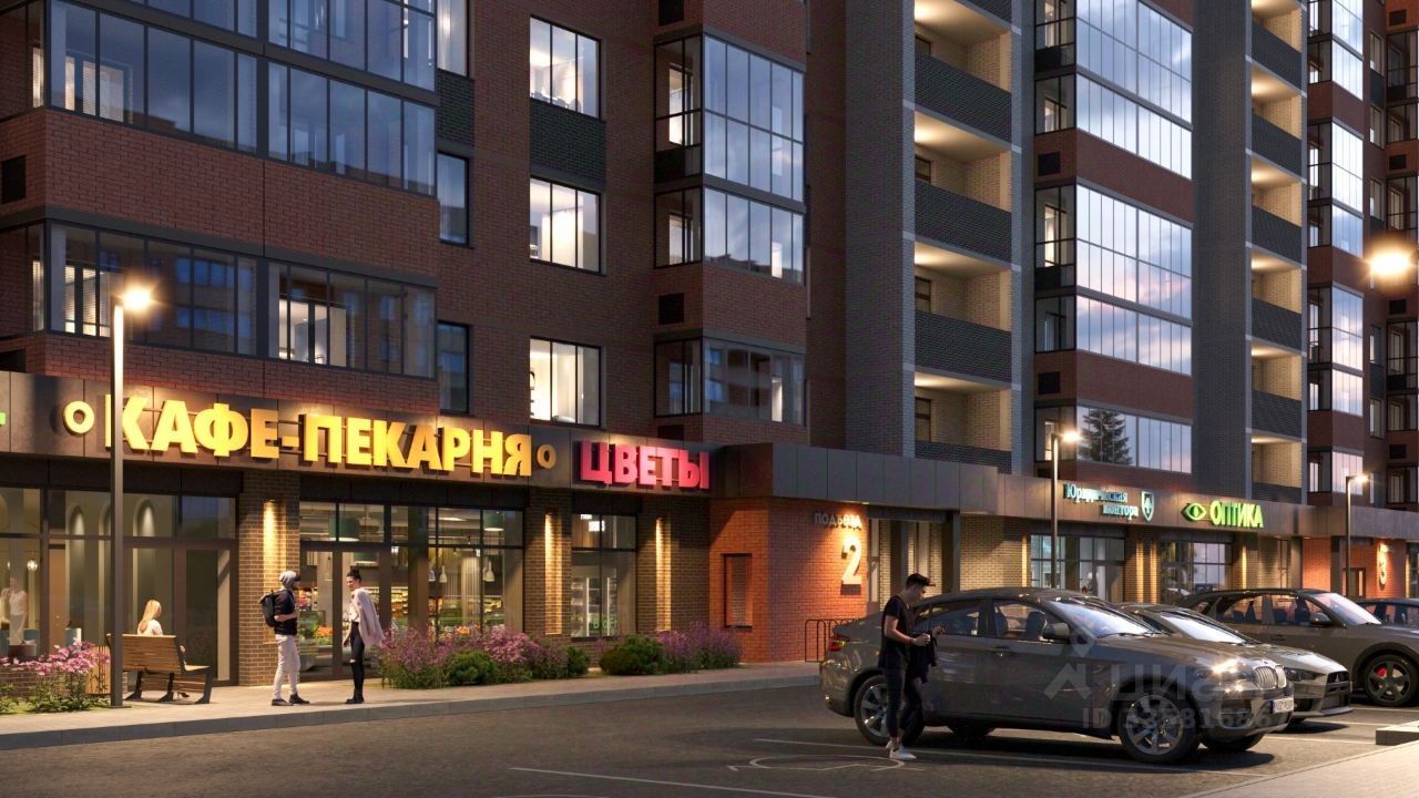 Также на первом этаже дома расположены коммерческие помещения, предусмотренные под открытие продуктового магазина, аптеки, предприятий сферы услуг и т.д.