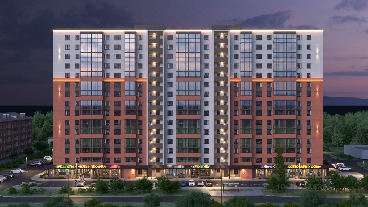 Также на первом этаже дома расположены коммерческие помещения, предусмотренные под открытие продуктового магазина, аптеки, предприятий сферы услуг и т.д.