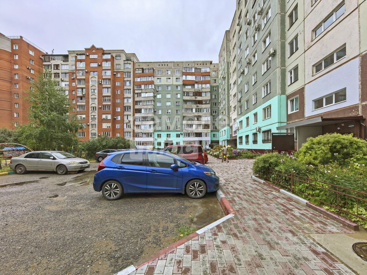 Придомовая территория ухоженная, а наземная парковка прямо во дворе дает Вам возможность припарковать автомобиль рядом с домом.