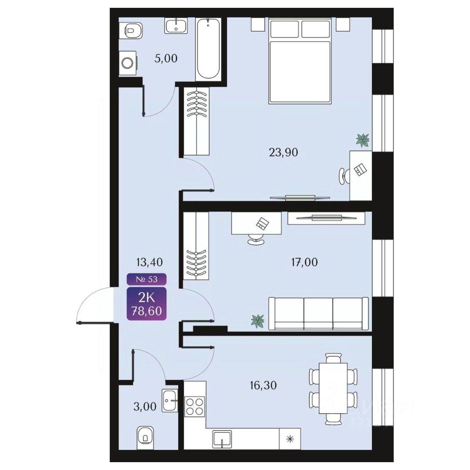 2-комнатная квартира, 78.6 м²
