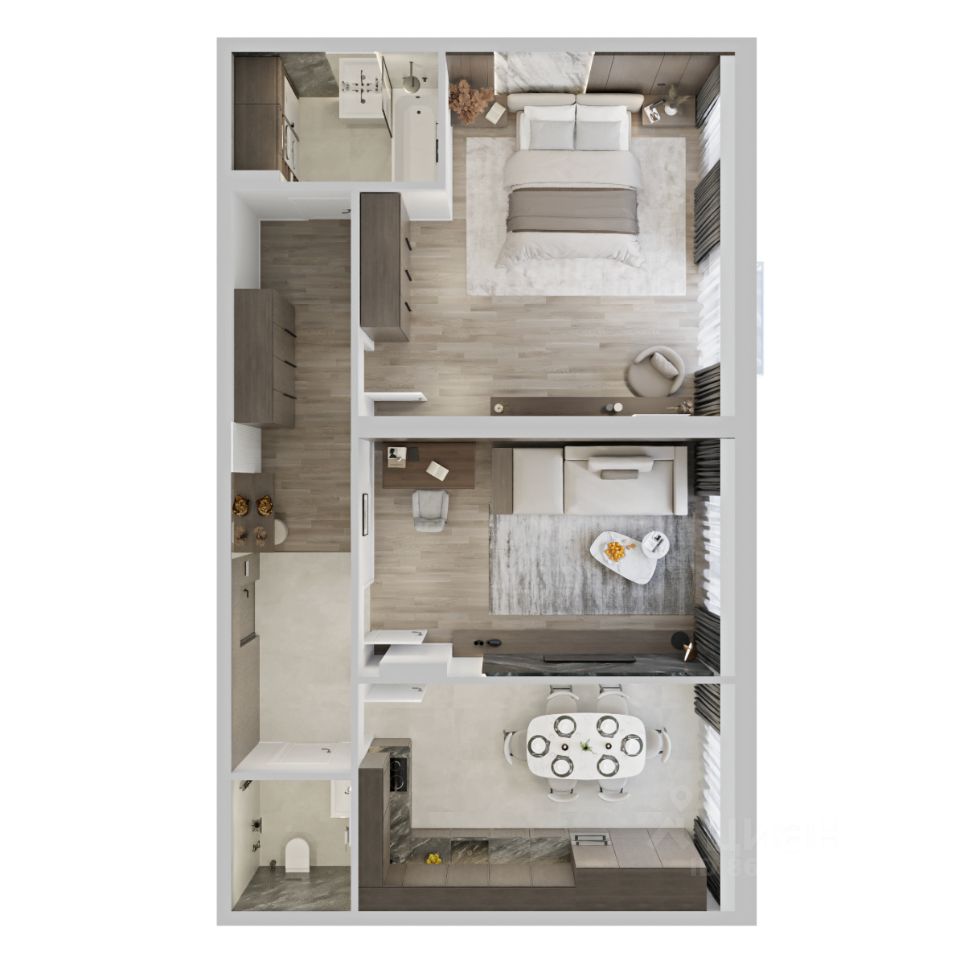 Проект предлагает просторные, гибкие и трансформируемые квартиры с потолками от 2,85 м до 4,8 м, площадью от 33 м² до 193,2 м², обеспечивающие удобство и эффективное использование пространства.