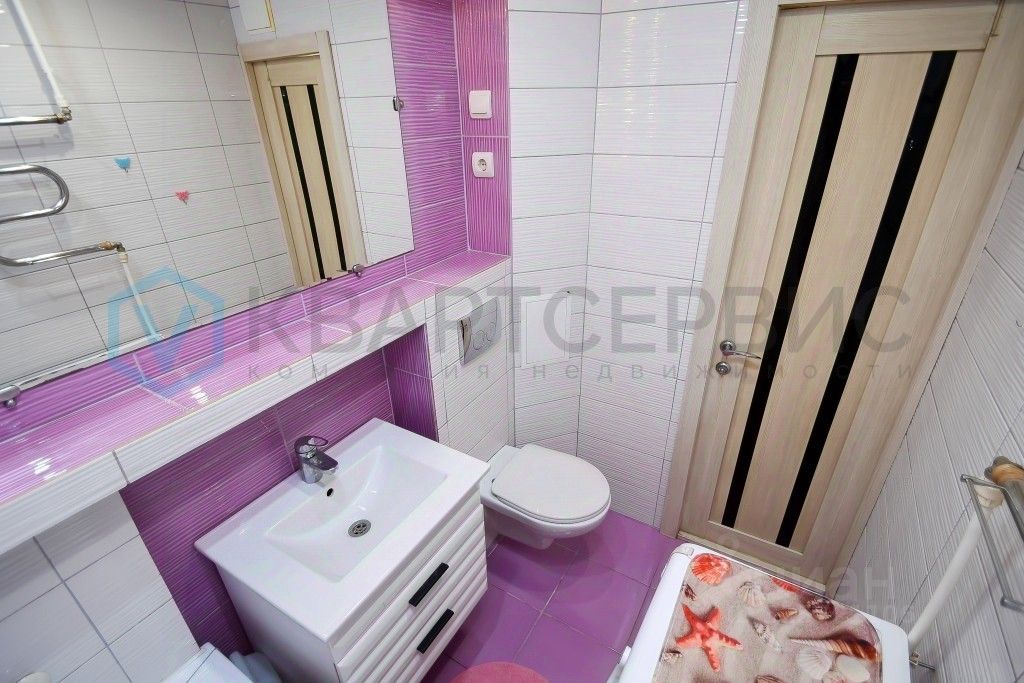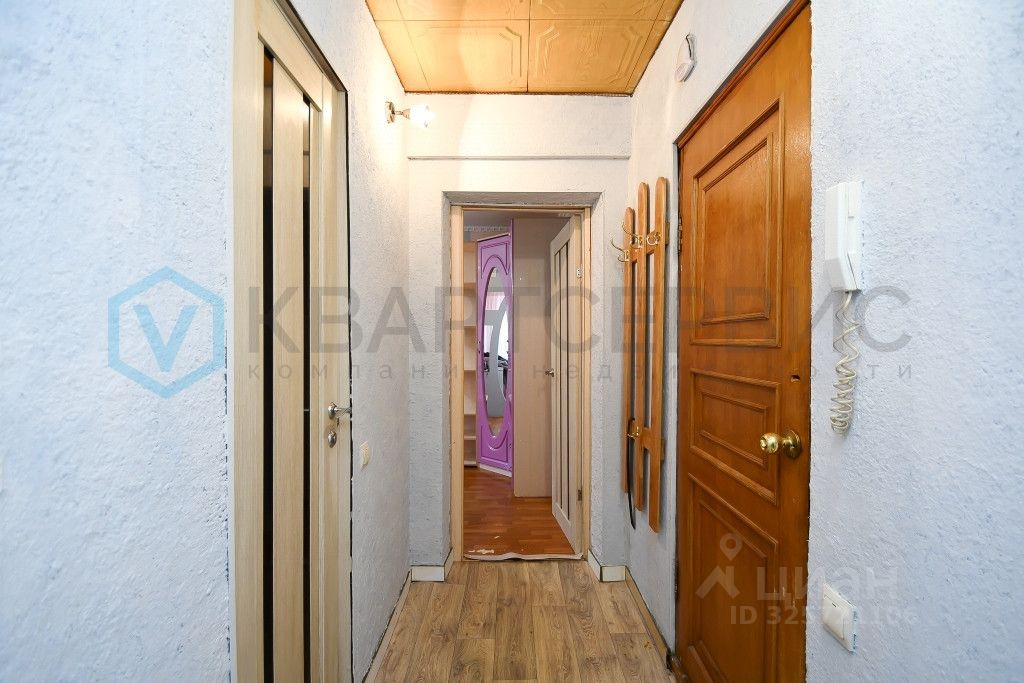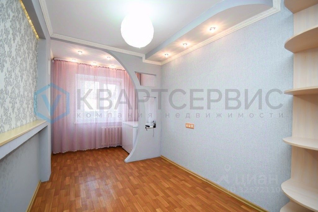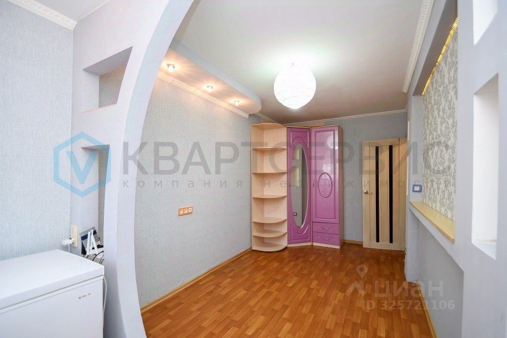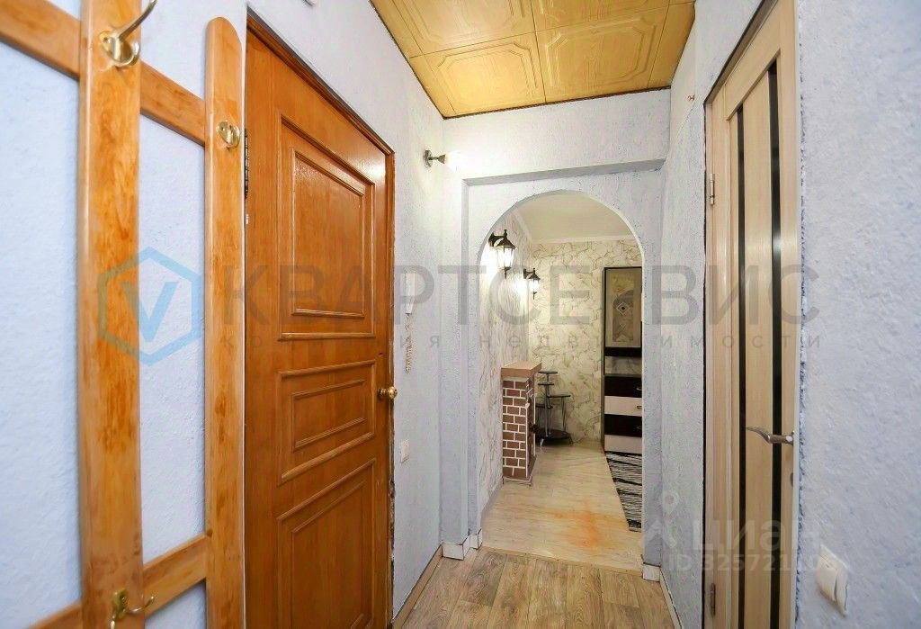 Квартира готова к проживанию: установлены хорошие окна, санузел облицован кафелем, на полу линолеум, остается кухонный гарнитур, шкаф в спальне.