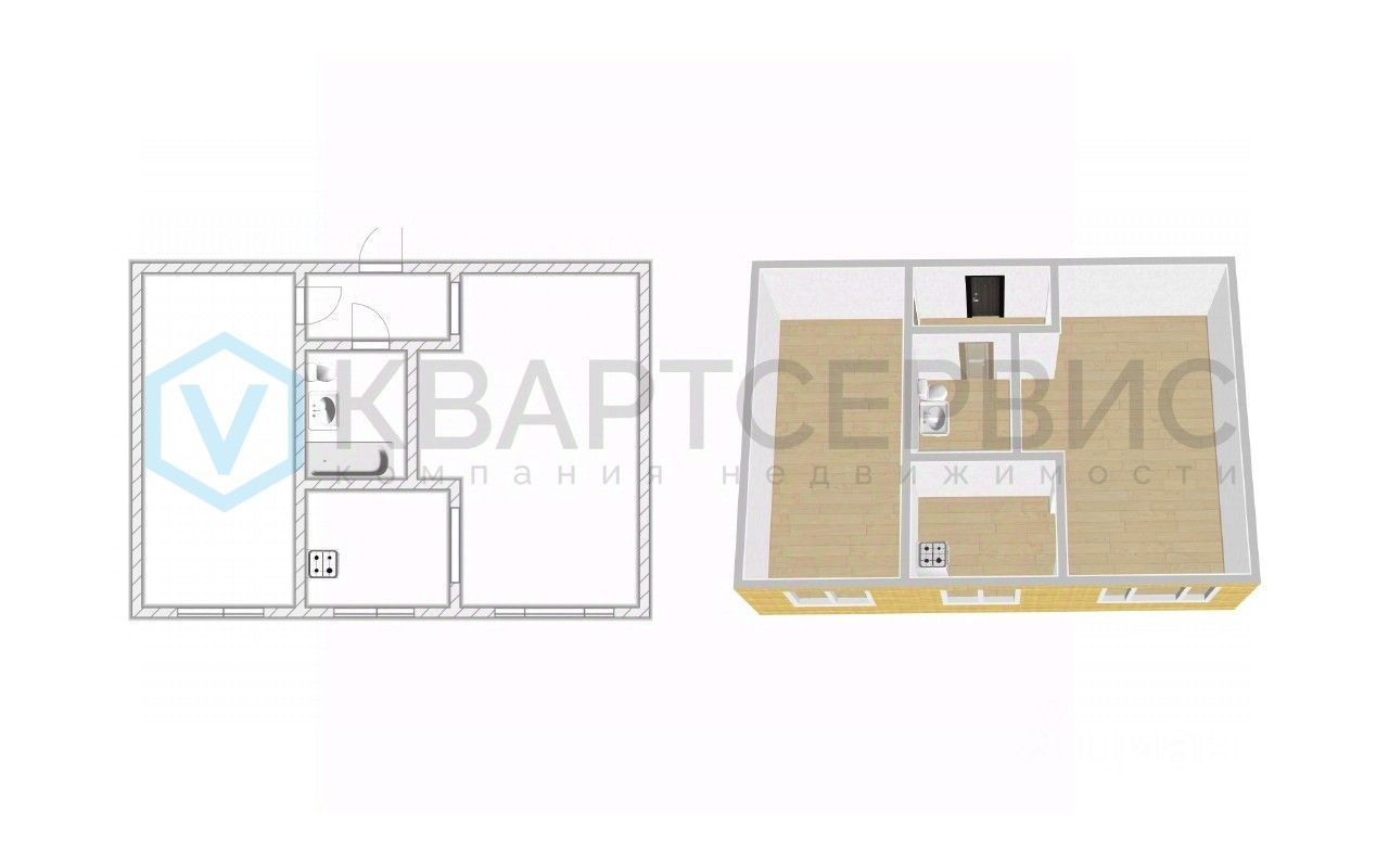 Квартира состоит из спальни, гостиной, кухни, совмещенного санузла, без балкона.