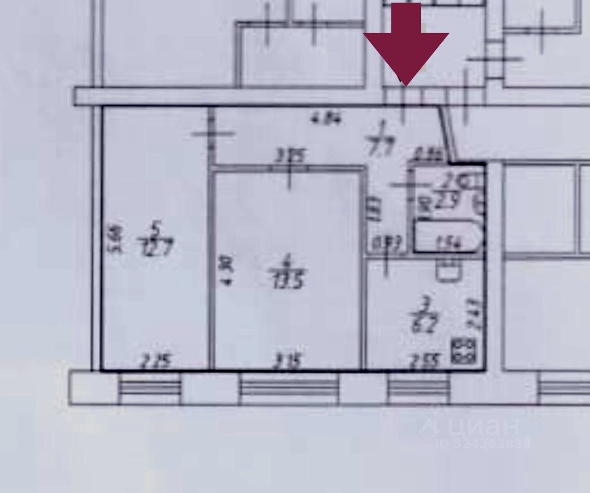 Площадь 43/27/6,2.