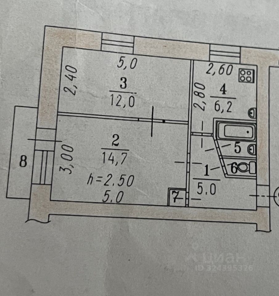 Квартира имеет жилую площадь 26,7 кв м и кухню площадью 6,2 кв м. Из окон вид на тихий двор, где расположена детская площадка.
