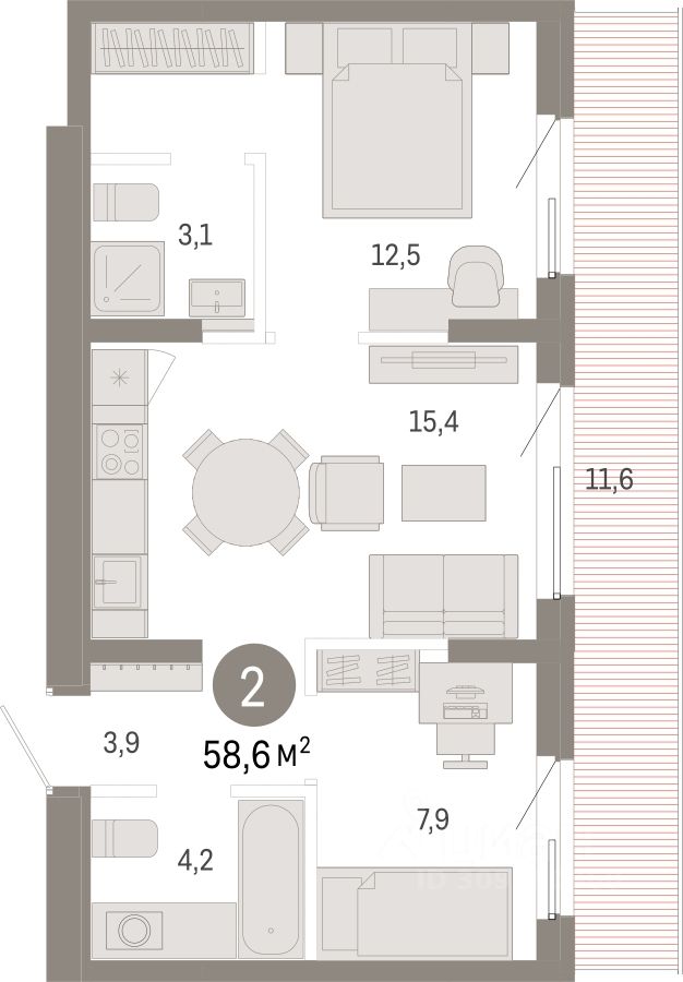 Двухкомнатная квартира в проекте ''Кварталы Драверта''- это квартира с объединенной кухней-гостиной, двумя спальнями и ванной комнатой. Купить квартиру выгодно напрямую от застройщика Брусника.