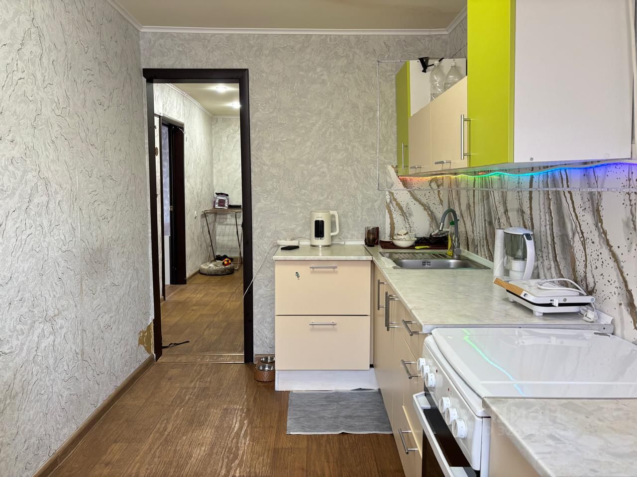 В квартире остаётся современный кухонный гарнитур, а также встроенный шкаф-купе — заезжайте без дополнительных вложений и обустраивайтесь сразу!