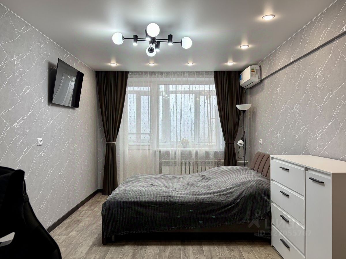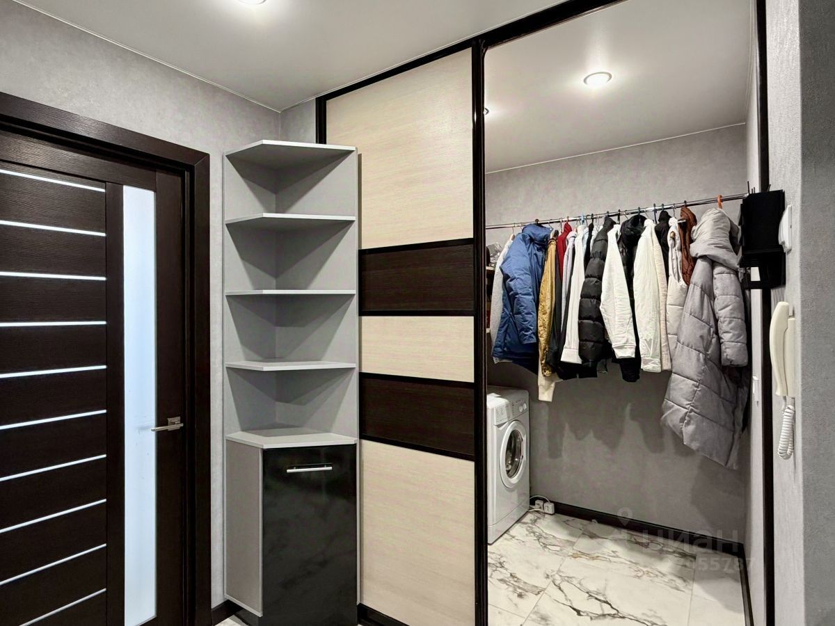 Квартира теплая, общей площадью - 45,4 кв.м. Выполнен современный и качественный ремонт: заменена полностью проводка, натяжные потолки с точечными светильниками и современными люстрами, на полу плитка и ламинат высокого класса. Установлена система кондиционирования. Санузел совмещен, новая сантехника. В прихожей интегрирована гардеробная. Балкон застеклен.