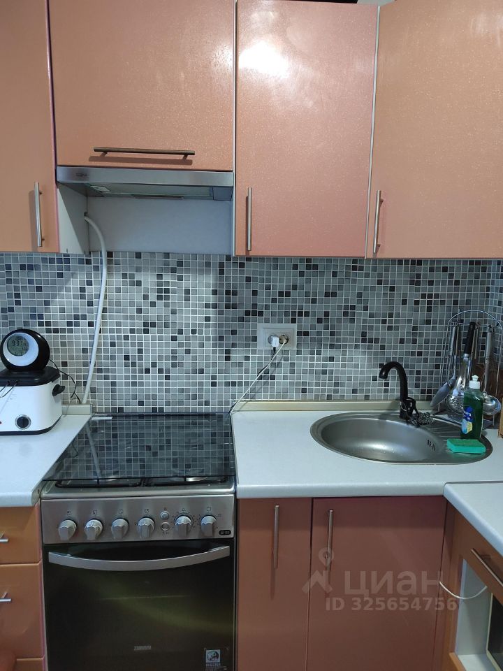 Кухня оснащена встроенным кухонным гарнитуром,все расположено компактно и удобно.