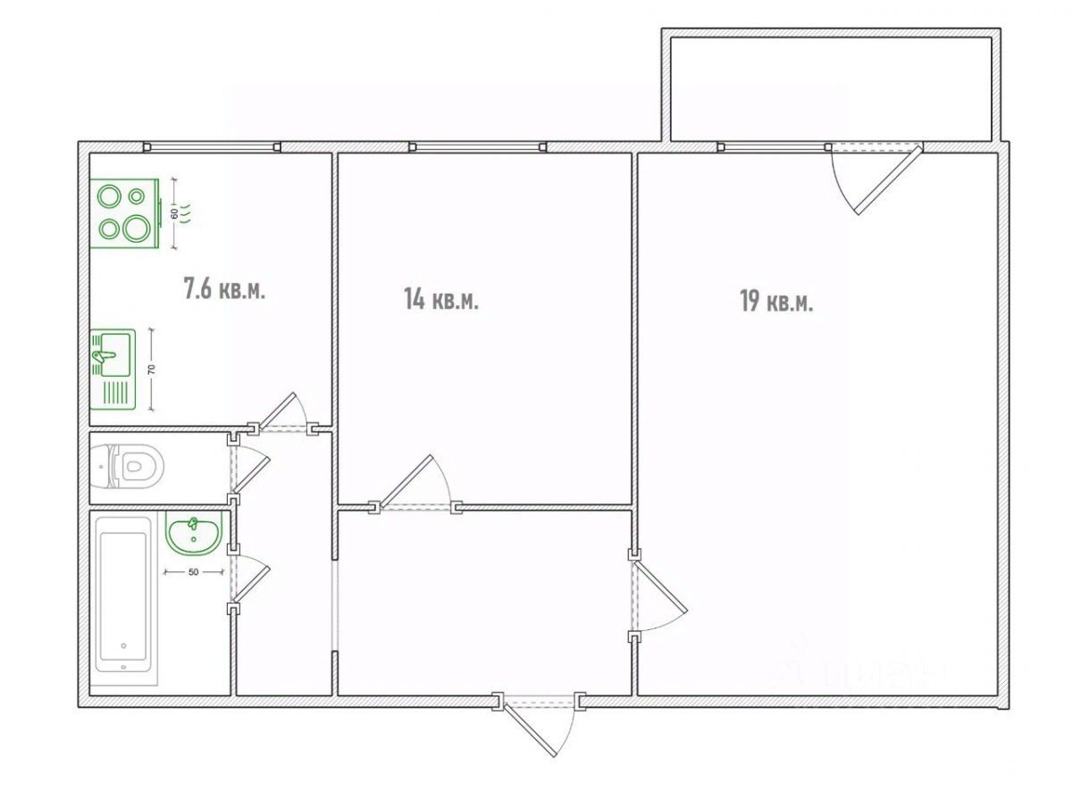 - Большая кухня 7,6 кв м