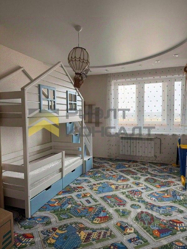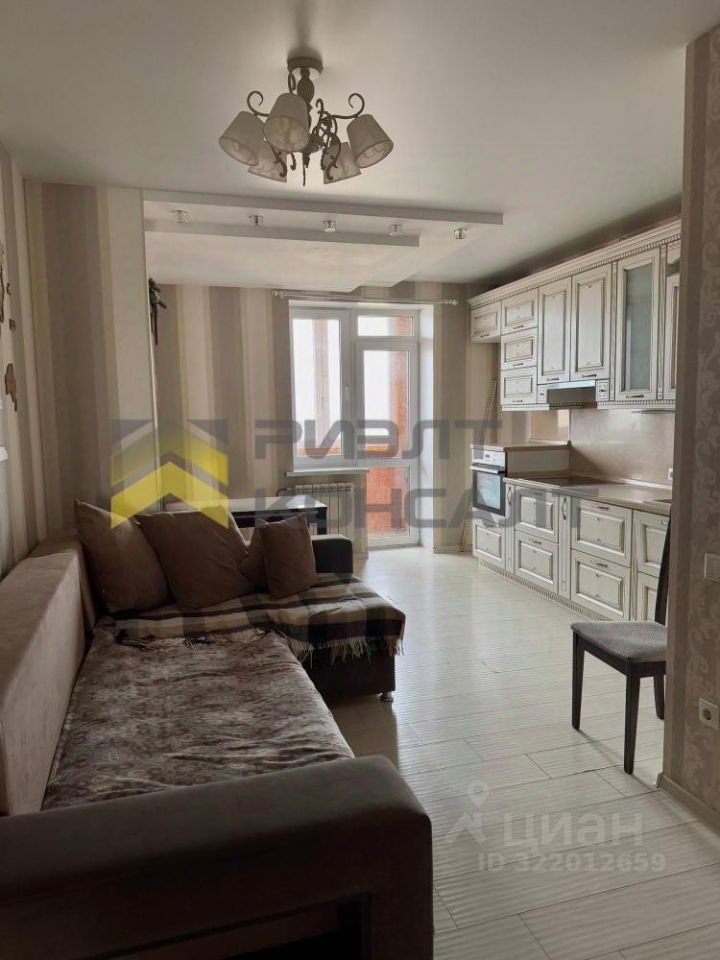В квартире качественный современный ремонт в нейтральных тонах: обои, натяжной потолок, на полу ламинат, в санузле и в коридоре плитка. Балкон застеклен.