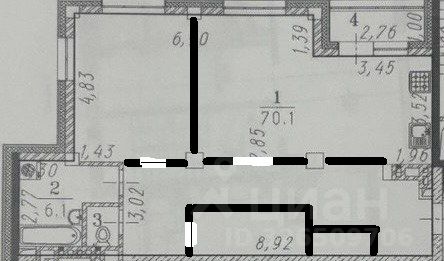 Изолированная комната удобной правильной формы, просторная кухня-гостинная, раздельный санузел, гардеробная. Застекленная лоджия (вход из кухни).