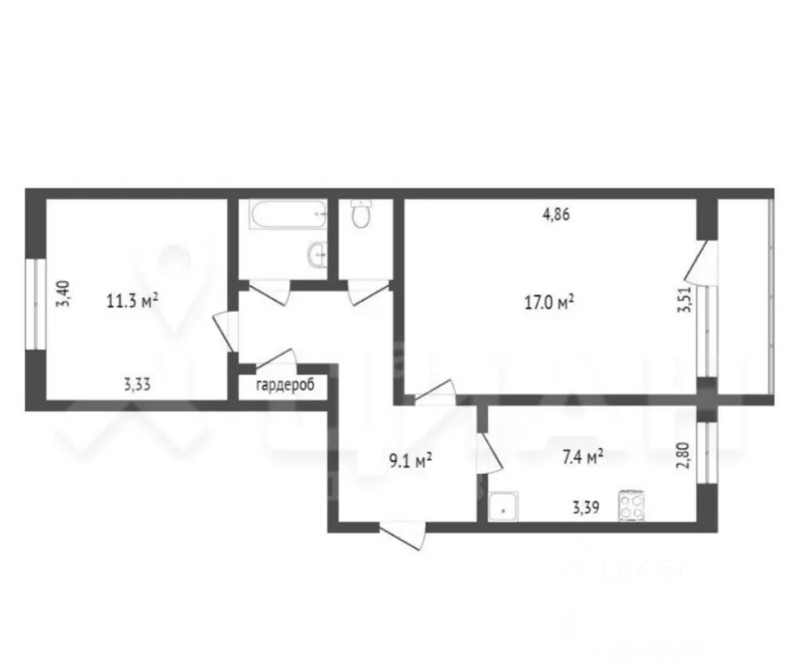 | Площадь общая | 51.8 м² |