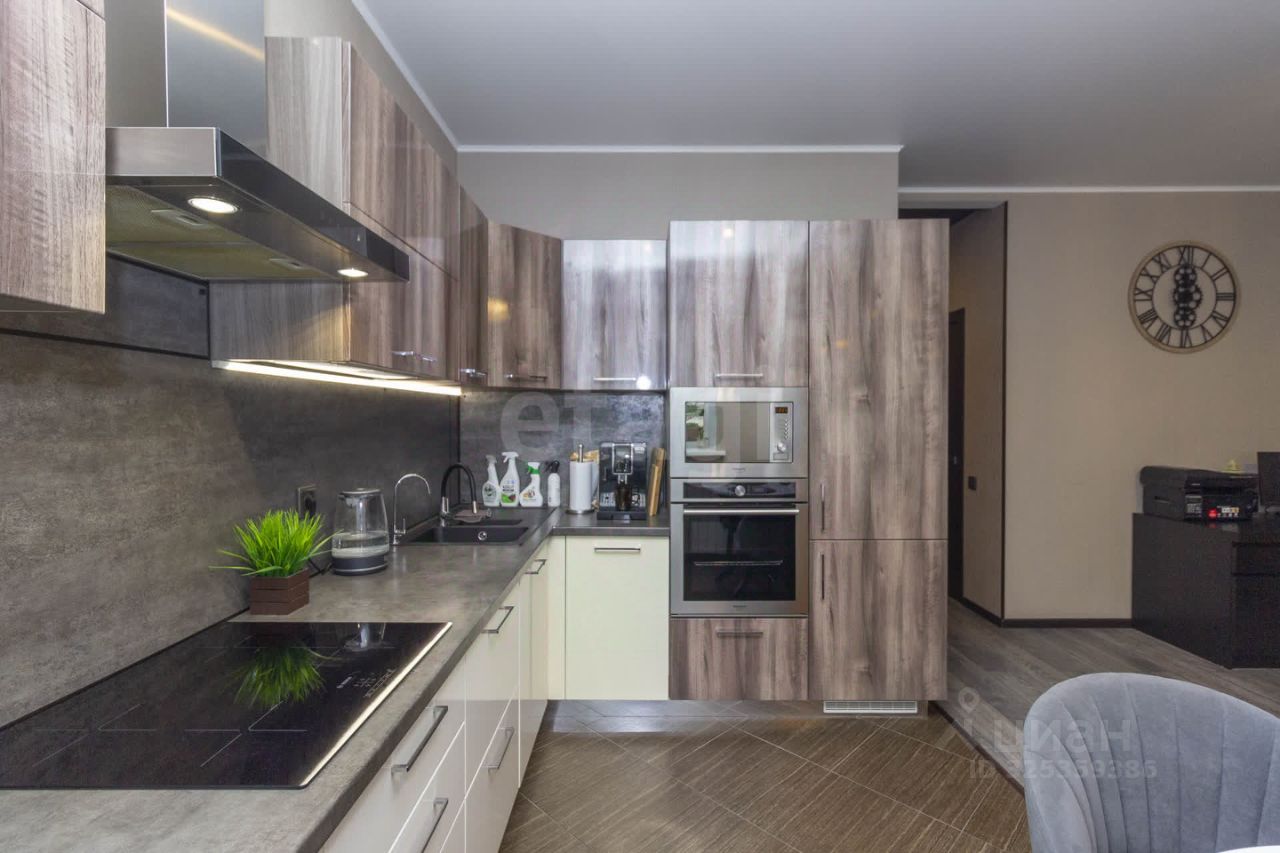 Особое внимание уделено кухне, выполненной по индивидуальному проекту с использованием премиум-фурнитуры и укомплектованной современной встроенной техникой. Благодаря этому помещение выглядит стильно и функционально, обеспечивая удобство приготовления пищи и организации семейных ужинов.
