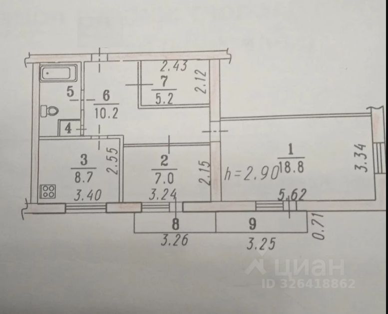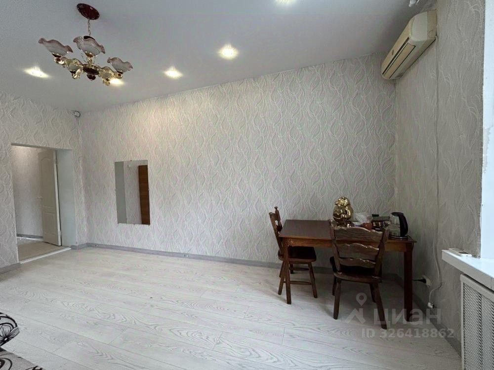 Натяжные потолки, высота 2,9 метра с диодным освещением. Комнаты изолированные. Есть кондиционер.