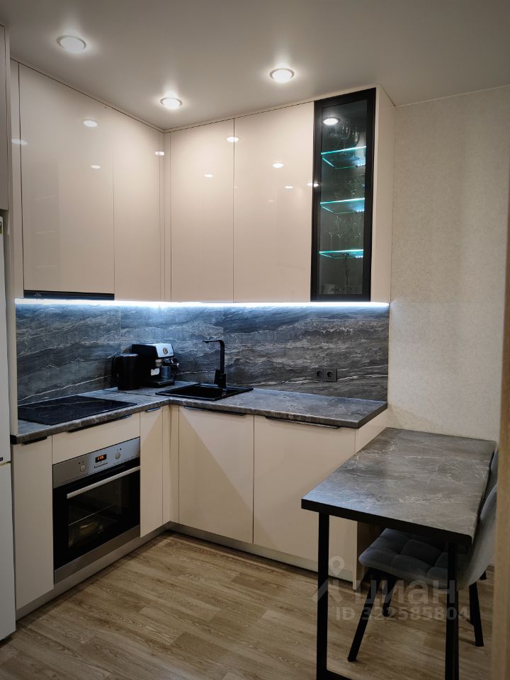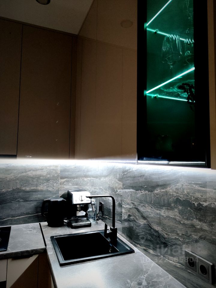 В квартире современная встроенная кухня со всей встроенной техникой, установлена сплит-система, 2 встроенных шкафа.
