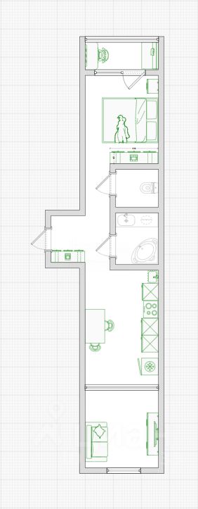 Планировка квартиры продуманная и функциональная, где рационально можно использовать каждый квадратный метр. Окна выходят на обе стороны, что гарантирует постоянное естественное освещение.