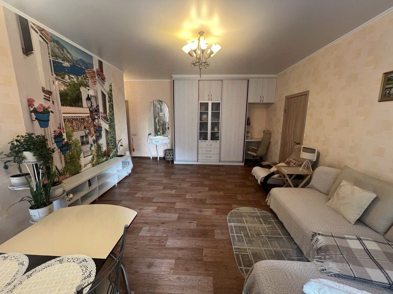 * Натяжные потолки по всей квартире.