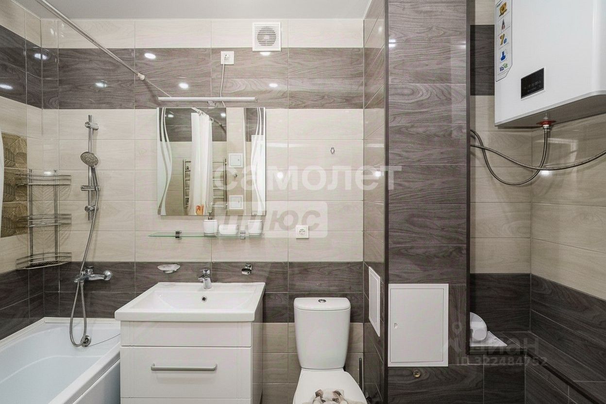 Санузел полностью облицован плиткой, установлен бойлер для комфортного использования горячей воды.