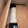 В спальне применено максимальное использование полезной площади: у окна размещен рабочий стол, ниша для хранения задекорирована деревянными панелями, всё пространство позволяет минимизировать усилия по уборке помещения (под всей мебелью проходит робот-пылесос).