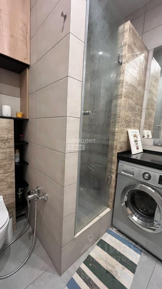 В санузле просторно, пространство с теплым полом, душевой кабиной, бойлером и установленной самая качественная сантехника.