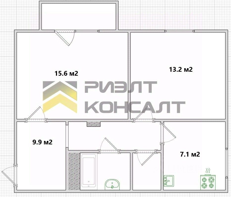 B кваpтиpe cделан косметический ремонт, установлены пластиковые окна, две больших отдельных комнаты (15,6 и 13,2), большой коридор (9,9), где можно сделать гардеробную, раздельный санузел.