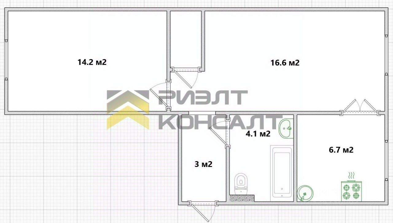 Трубы поменяны на пластиковые. В кухне остается гарнитур.