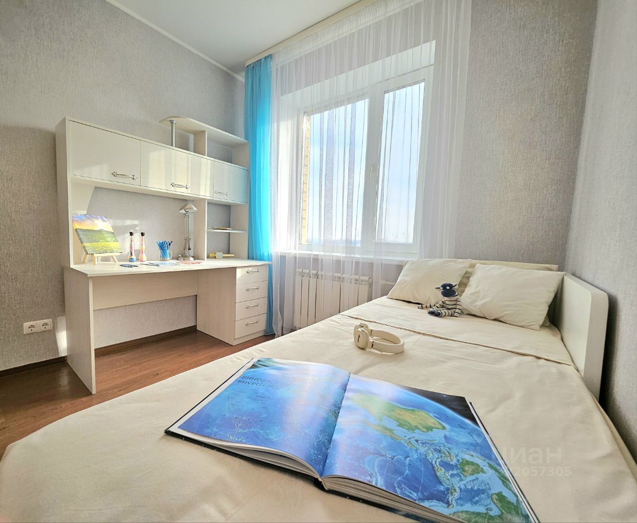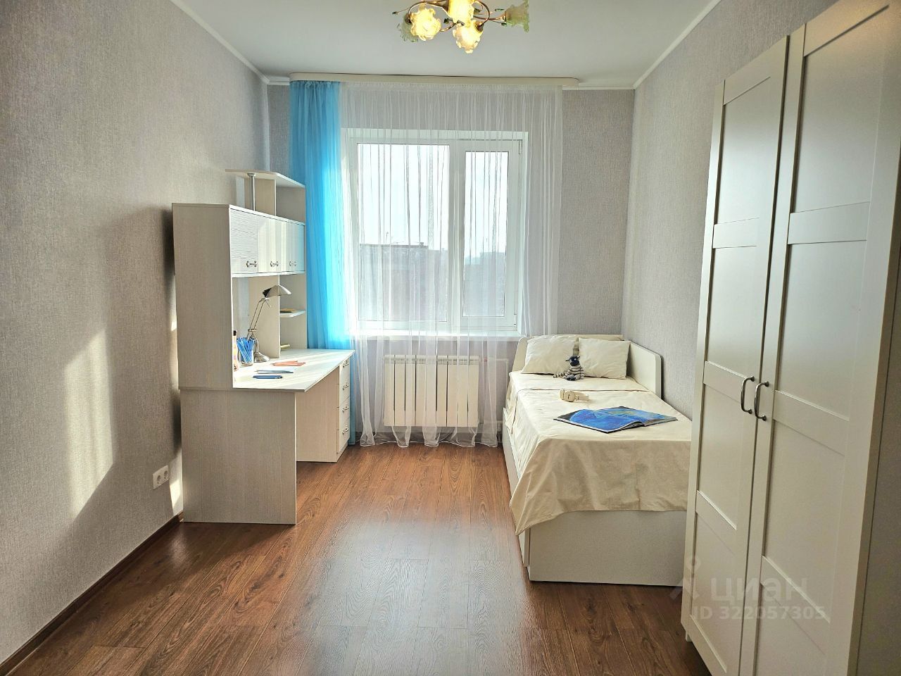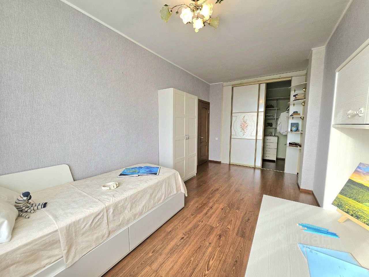 Спальная комната с вместительной гардеробной (шкаф-гардероб, 2-спальная кровать (2-ое спальное место выдвигается), 2 матраса, письменный стол) .