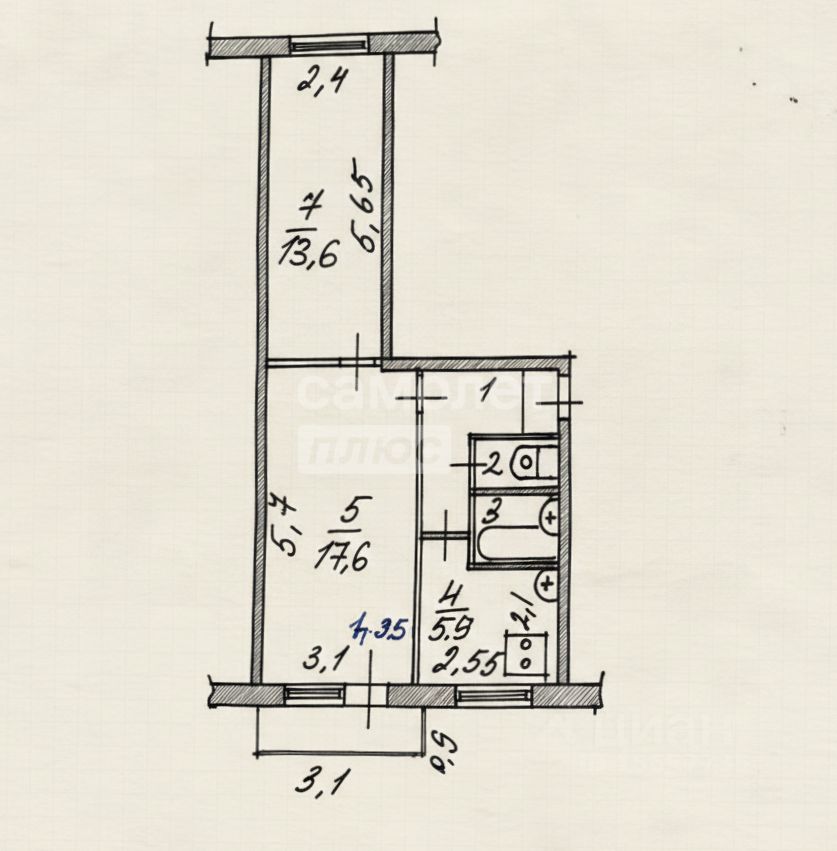 Состояние: Все инженерные системы в порядке. Санузел раздельный, пластиковые стеклопакеты.