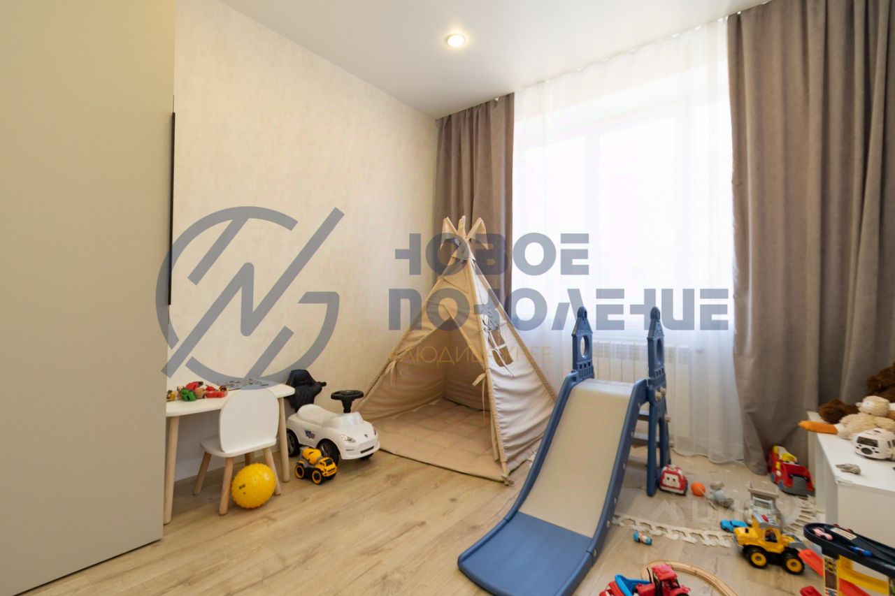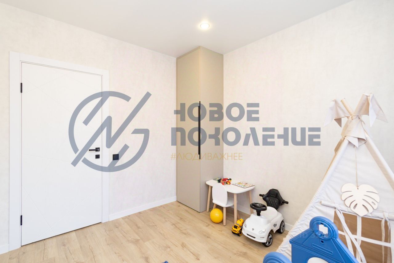 Квартира очень теплая, с удобной планировкой: просторная кухня-гостиная с выходом на лоджию, большая детская, уютная спальня, совмещенный санузел с большой ванной, так же есть много места для хранения: встроенные шкафы, гардеробная и постирочная.