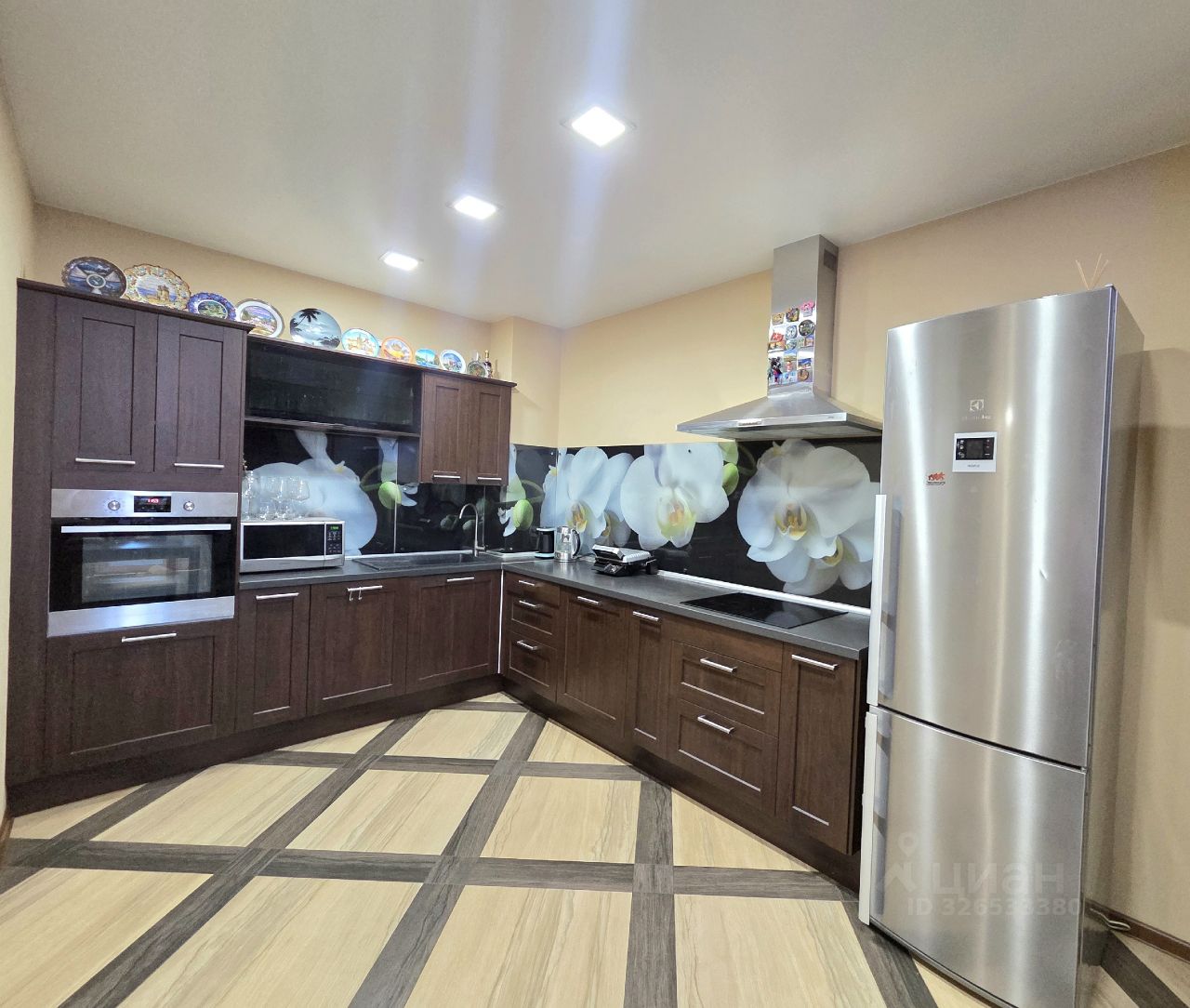 Качественный ламинат с диагональной раскладкой. В гостиной и коридоре - керамогранит. Подогрев пола.