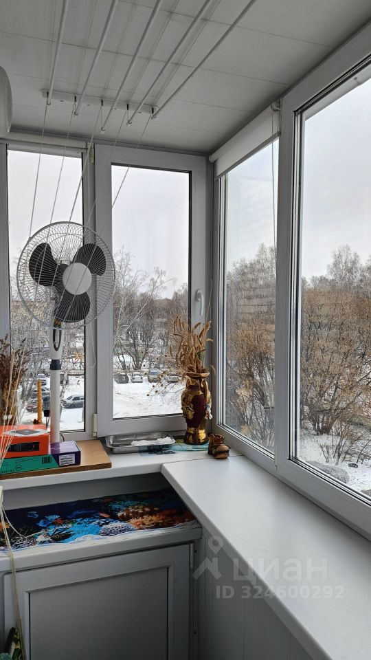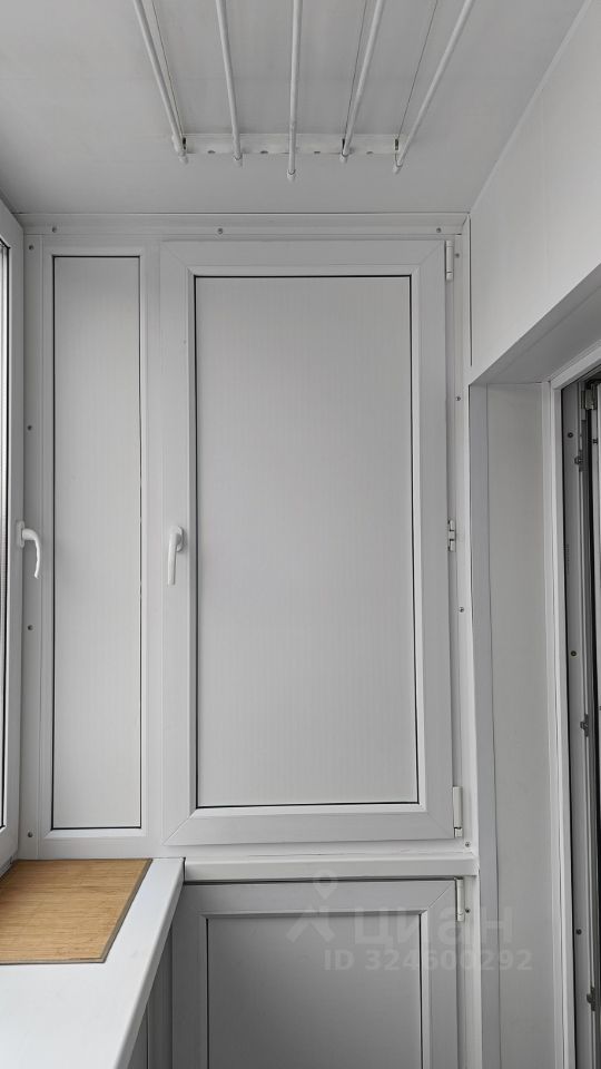 Окна ПВХ, балкон застеклен ПВХ, на балконе установлены встроенные шкафы.