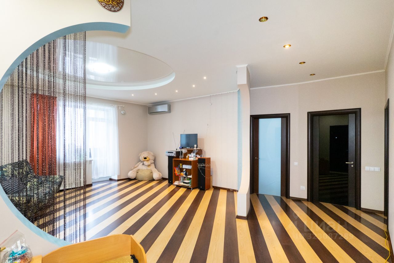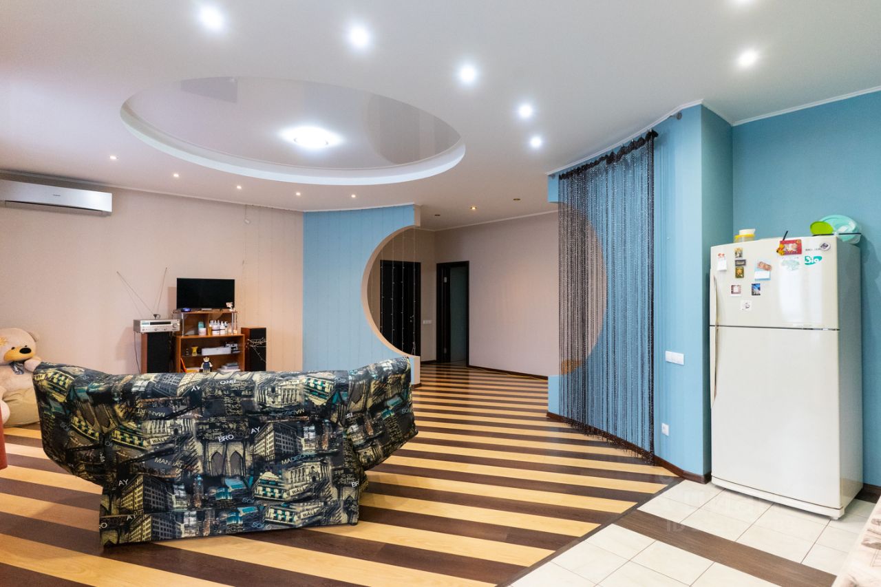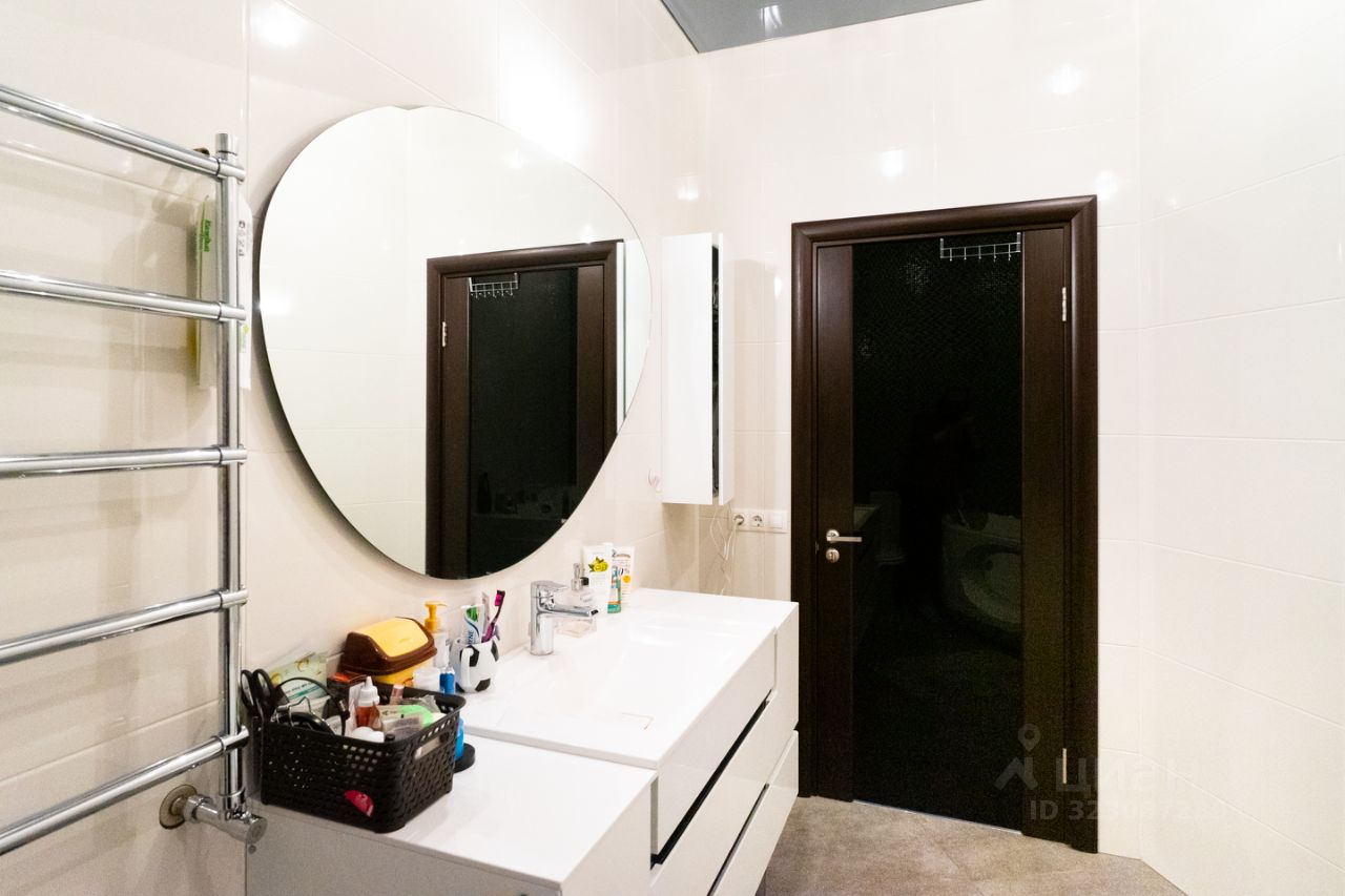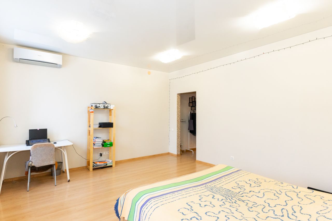 Выровнены стены, установлено два кондиционера, теплые полы в спальне, на кухне и на балконе. Так же во всей квартире натяжные потолки и ламинат на полу. Ванные комнаты облицованы кафелем, установлена современная сантехника.