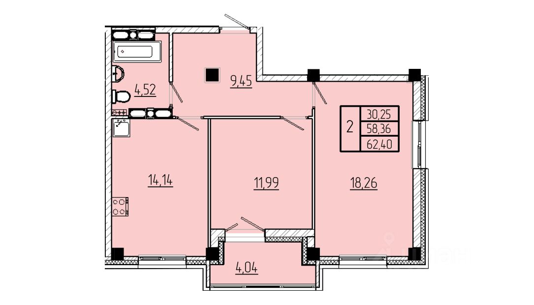 | Площадь общая | 62.4 м² |